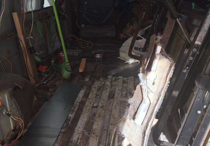 On ne pose pas le premier panneau. On re-mesure, re-découpe, avons oublié l'emplacement de la ceinture de sécurité, recoupons à nouveau, forçons pour placer la planche, visons, cassons les vis (ou les pas de vis).
